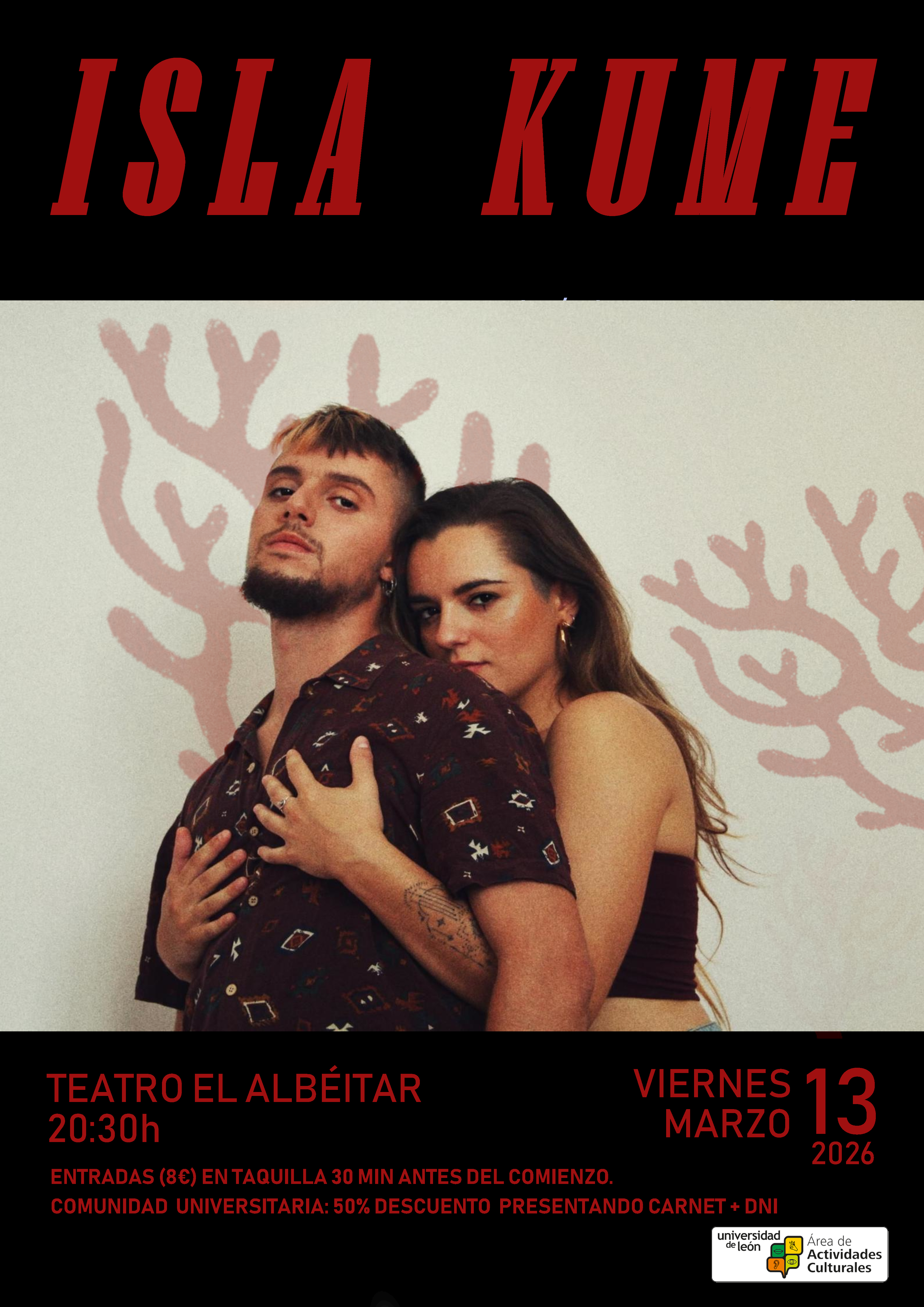 ENTRADAS (8€) EN TAQUILLA 15 MIN ANTES DEL COMIENZO. 50% DE DESCUENTO A LA COMUNIDAD UNIVERSITARIA PRESENTANDO CARNET + DNI